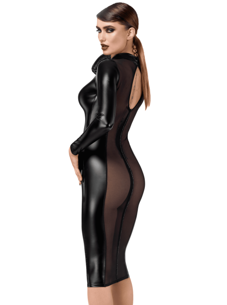 La F371 Luxuria Robe mi-longue cristal transparente de la marque Noir Handmade est une création audacieuse et raffinée destinée aux femmes qui souhaitent allier luxe, glamour et sensualité. Conçue dans un tissu cristal transparent de haute qualité, cette robe mi-longue offre une allure élégante et hypnotique, tout en mettant subtilement en valeur la silhouette. Fidèle au savoir-faire de Noir Handmade, elle combine design sophistiqué, confort et finitions premium, pour un rendu impeccable et durable.