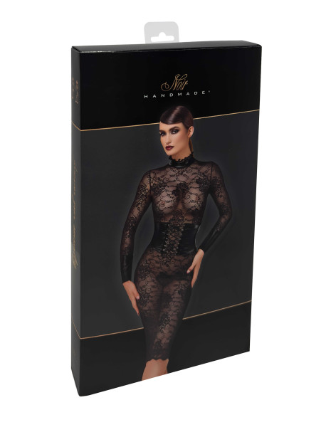 Grâce à sa coupe mi-longue, cette robe en dentelle offre un parfait équilibre entre élégance chic et charme sensuel. Le corset intégré permet de souligner la taille, d’harmoniser les courbes et de créer une silhouette flatteuse, tout en restant confortable à porter. La dentelle finement travaillée apporte une touche de transparence subtile, idéale pour mettre en valeur la féminité avec élégance, sans jamais tomber dans l’excès. Fidèle à la réputation de Noir Handmade, ce modèle se distingue par ses finitions soignées, la qualité de ses matériaux et son style haut de gamme.