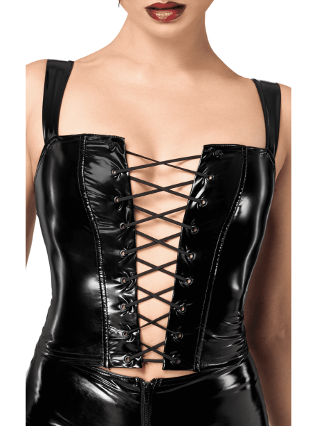 F379 Dominae Corset Top en PVC lacé sur l’avant