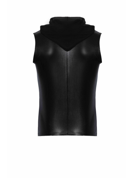 H066 Top Zippé Sans Manches à Capuche Transparente – Noir Handmade | Top Sexy Femme