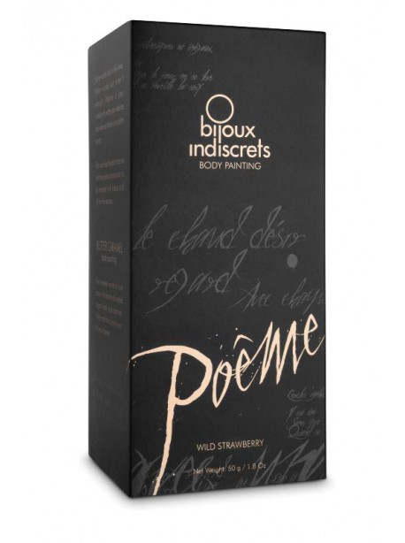 Offrez une expérience sensuelle et créative avec la Peinture pour Corps Poème – Fraise Sauvage de Bijoux Indiscrets. Un produit qui combine plaisir visuel, tactile et gustatif. Disponible sur Boutique Doubs Plaisirs. Transformez vos moments intimes en véritables œuvres d’art. Et laissez libre cours à vos désirs !