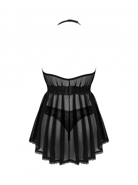 Serafia Nuisette et string – Noire de la marque Obsessive est une création élégante et sensuelle, conçue pour sublimer la féminité.