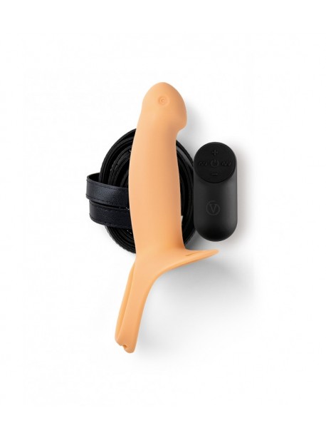 Harnais creux avec vibration rechargeable pour placer le pénis à l’intérieur, en 100% silicone. Grâce à son toucher doux, il se sentira comme une véritable pénétration. De plus, il intègre une cavité pour insérer les testicules pour un meilleur soutien.